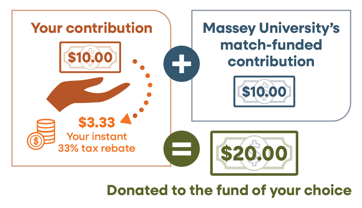 Massey University generously match-funds donations made, meaning every donation you make from your salary is doubled before it reaches us here at the Foundation.